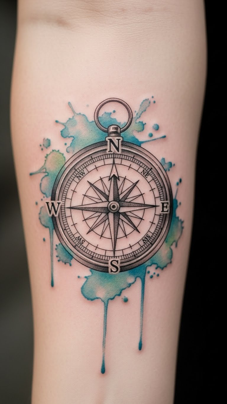This compass tattoo represents the journey of self-discovery and direction in life, echoing the vibrant spirit of Los Angeles.