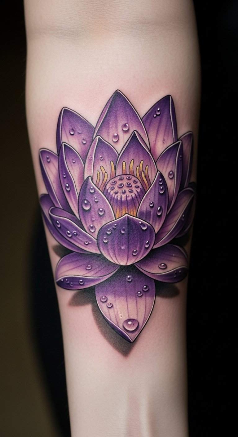 The purple lotus symbolizes transformation and spiritual empowerment, making it a profound choice for a tattoo.