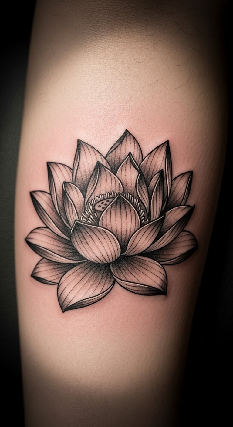 The lotus flower symbolizes creation, rebirth, and the sun’s life-giving energy, making it a profound choice for a tattoo.