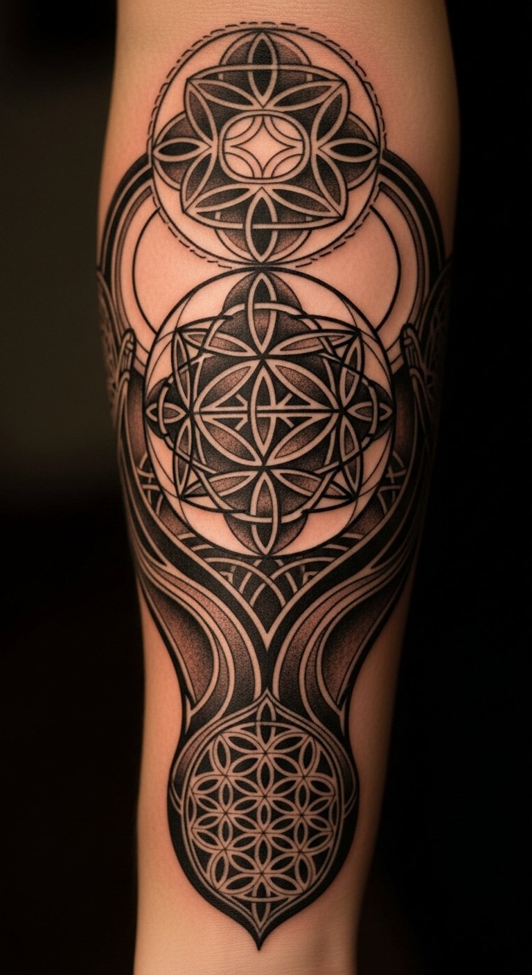 The natural skin tone enhances the design, making it appear as if it was always a part of the individual, merging the past with the present.