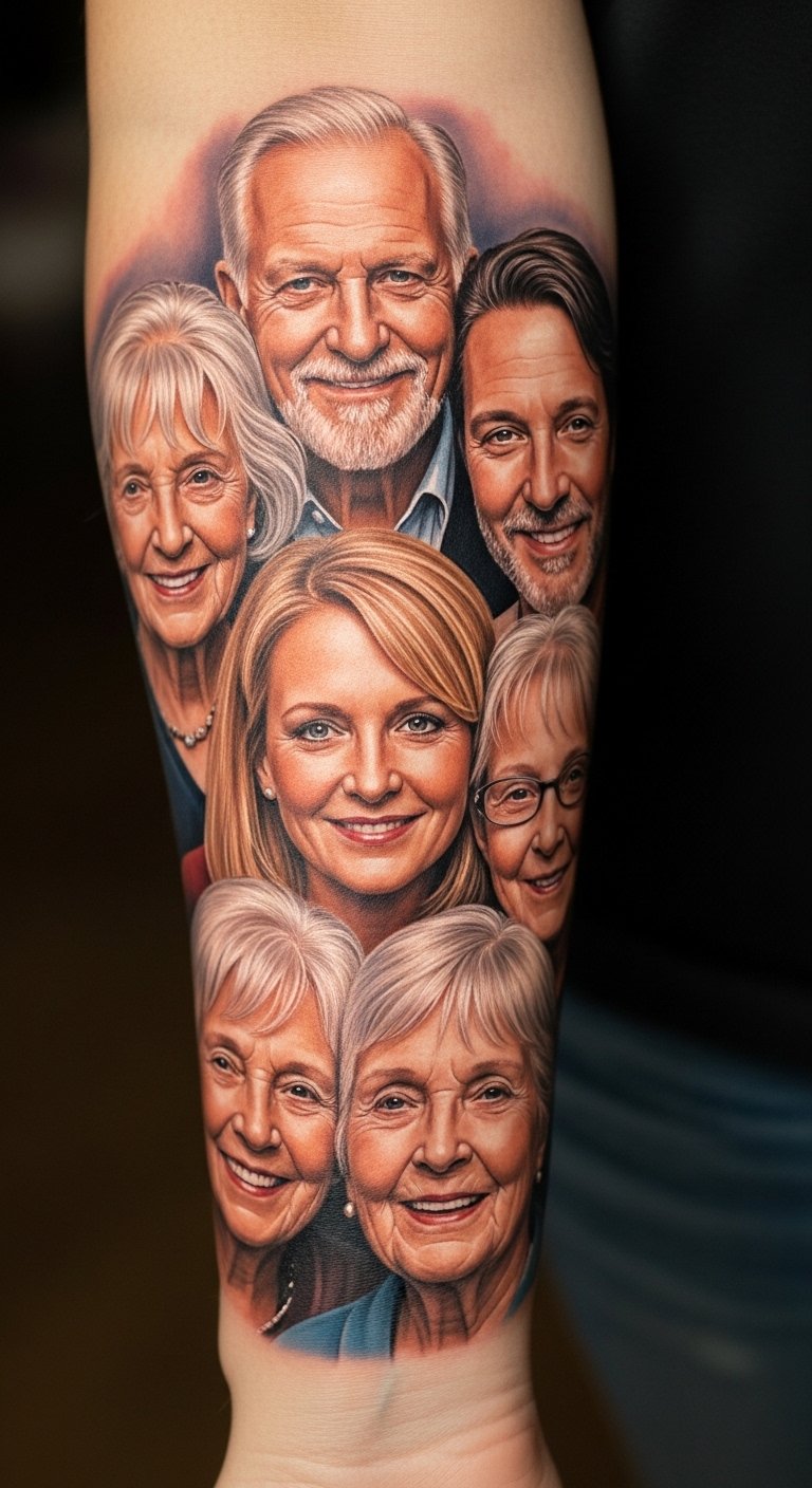 This tattoo, positioned on the forearm, symbolizes the deep-rooted connections and shared stories that define one’s family legacy.