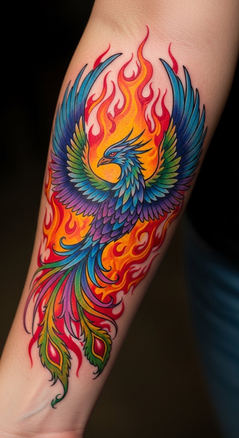 The phoenix symbolizes rebirth and renewal, reflecting the personal journeys we all experience. This tattoo, located on the forearm, serves as a constant reminder of resilience and transformation through life’s challenges.