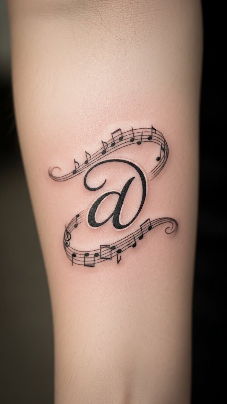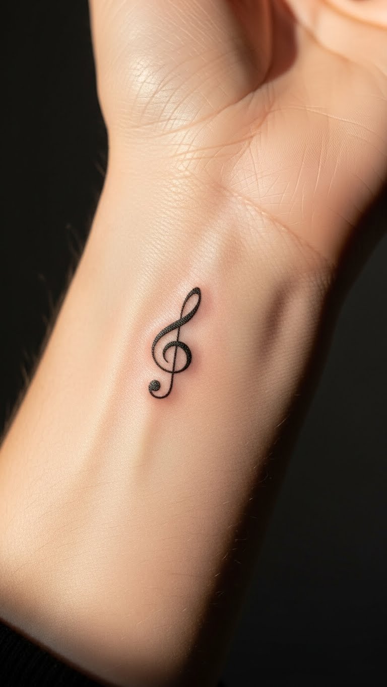 Placed on the inner forearm, it offers a personal reminder of the profound influence music has on one’s journey.