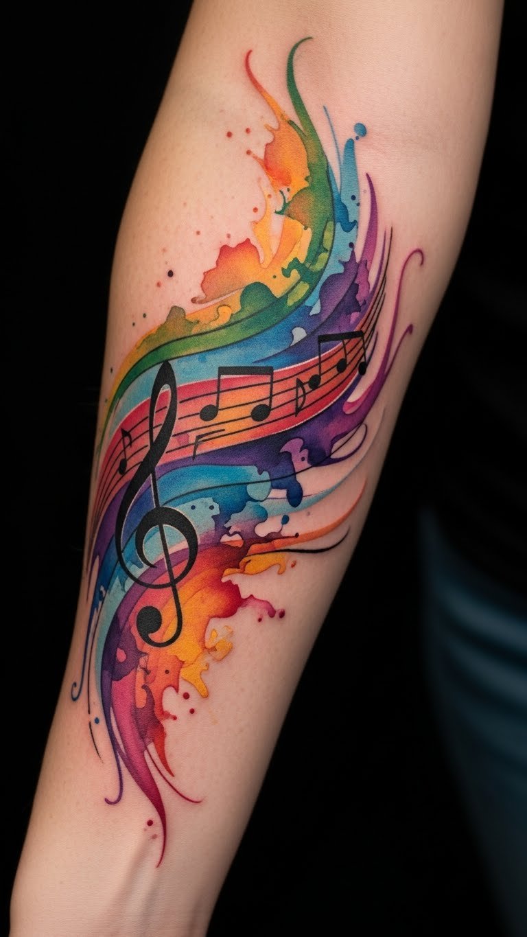Placed on the forearm, it serves not only as a personal statement of passion for music but also as a reminder of the freedom and creativity that art brings to life.