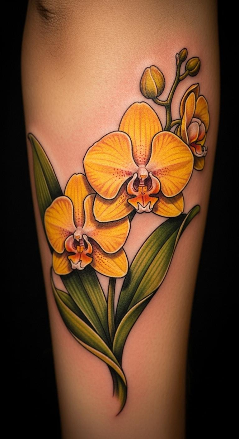 The orchid tattoo symbolizes strength and resilience, reflecting the ability to thrive in adversity.