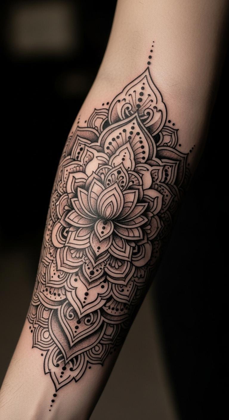 This mandala tattoo symbolizes the intricate connection between unity and individuality, wrapping around the forearm to serve as a constant reminder of one’s unique place within the greater whole.
