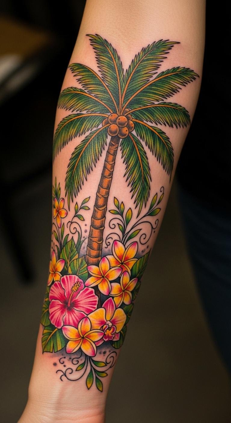 Palm Tree Tattoos With Floral Elements