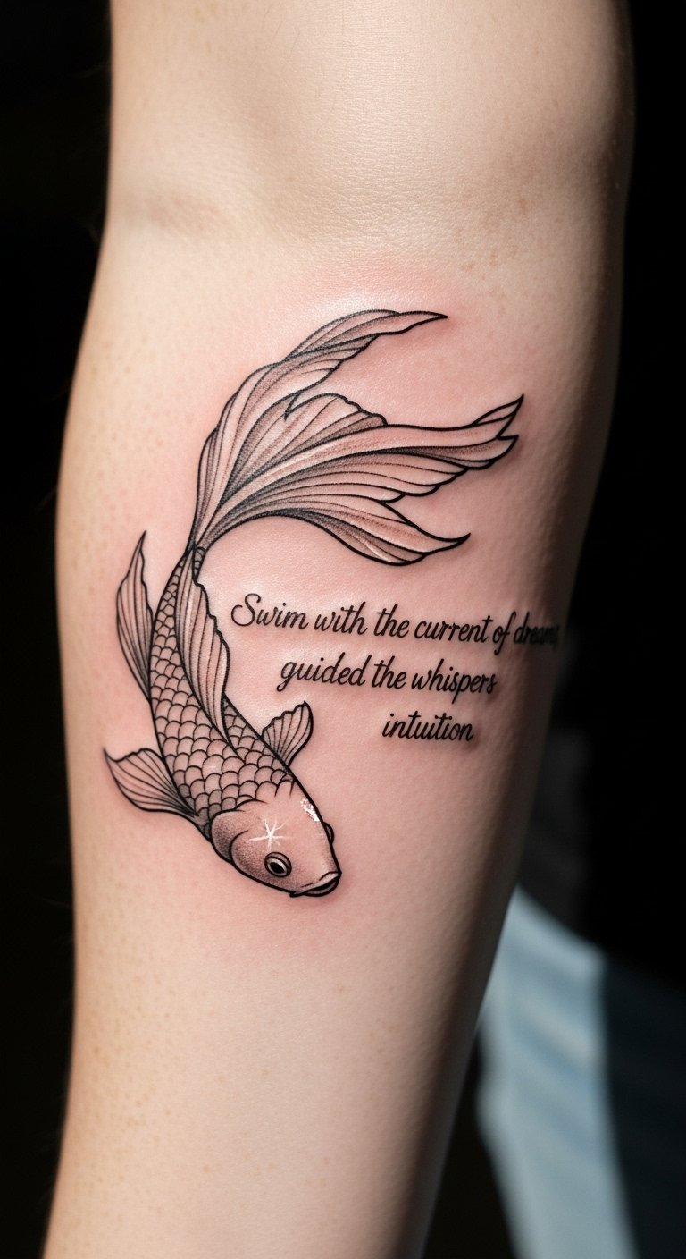 This stunning tattoo concept embodies the essence of Pisces, representing creativity and wisdom through the delicate fish illustration.