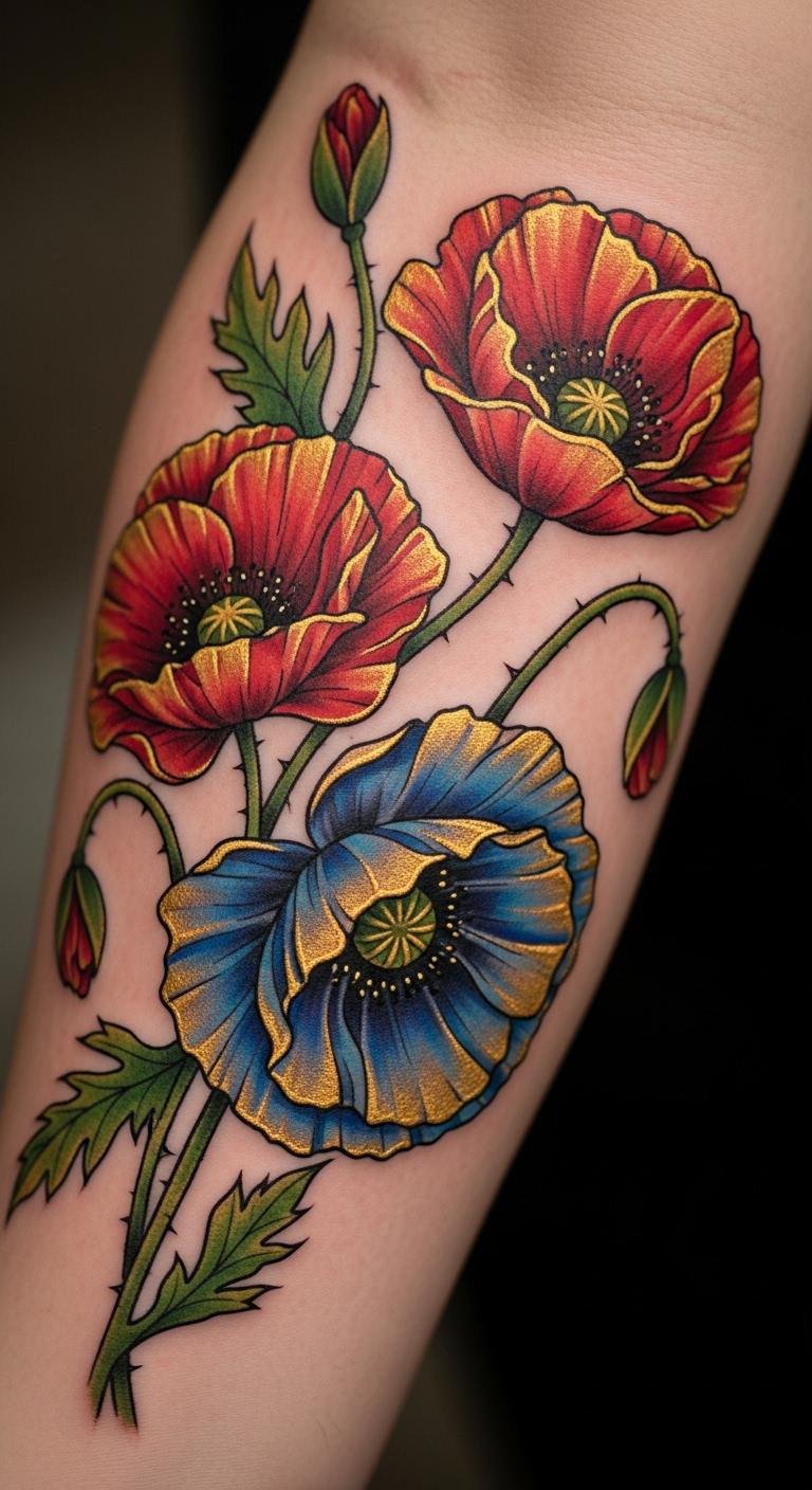 Multi-Colored Poppy Tattoos for Individuality