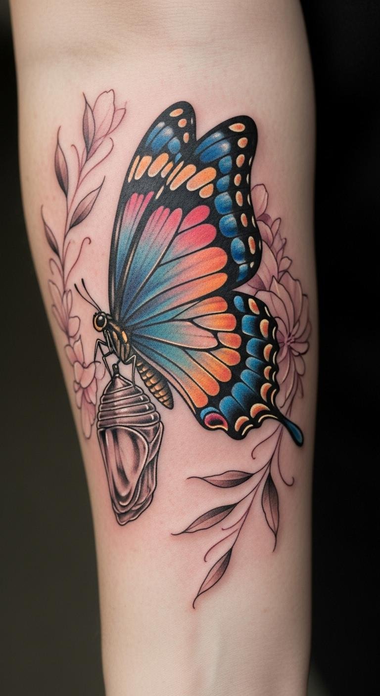 This tattoo embodies the essence of transformation, reflecting personal growth and the journey towards freedom.