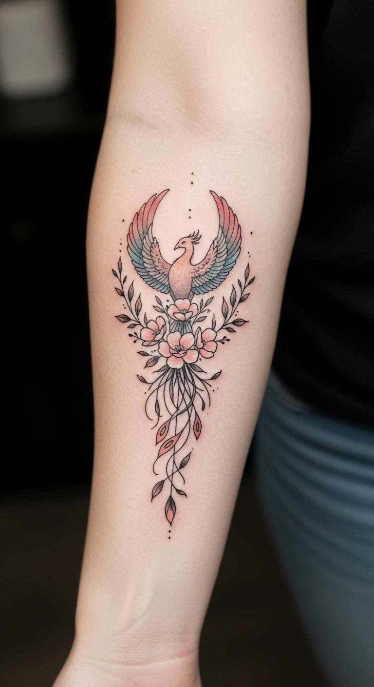This tattoo, placed on the forearm, is a powerful emblem of resilience and hope, as it tells a story of healing and personal empowerment.