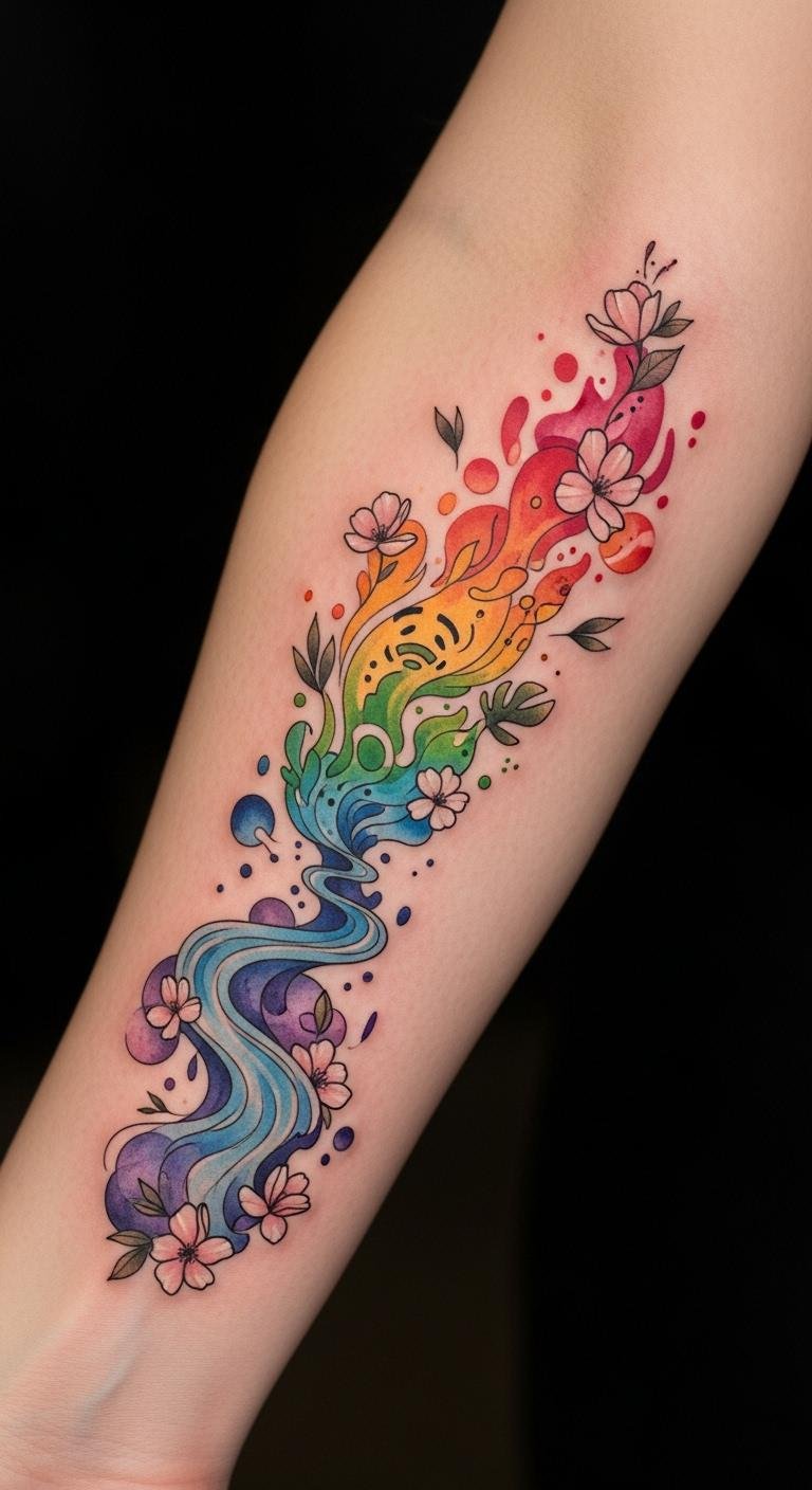 Placed on the inner forearm, it serves as a constant reminder of vulnerability and strength. The watercolor splashes signify the beauty that can emerge from pain, encouraging conversations about mental health and fostering a sense of community.