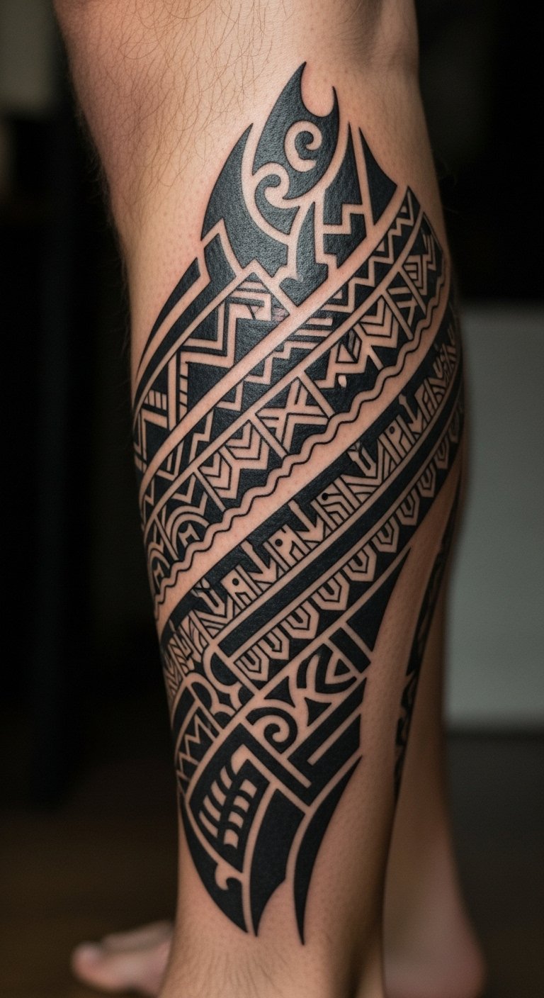 Cultural Heritage Tribal Shin Tattoo
