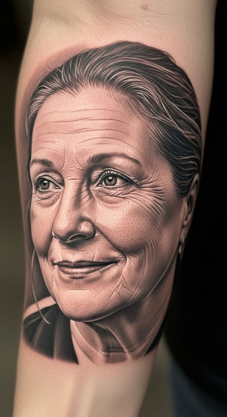 The natural textures and tones enhance the emotional depth, making the tattoo not just an artwork but a heartfelt tribute to those who’ve profoundly influenced one’s life journey.