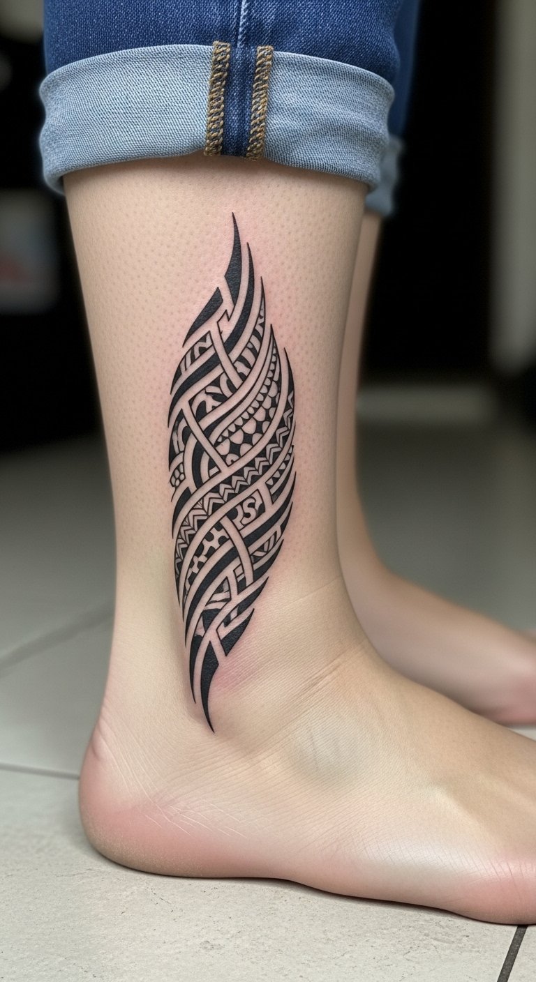 Positioned on the ankle, it serves as a subtle yet powerful expression of heritage, visible in everyday life.