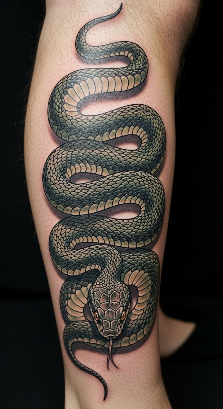 Lower Leg Snake Tattoos: Endurance and Stability