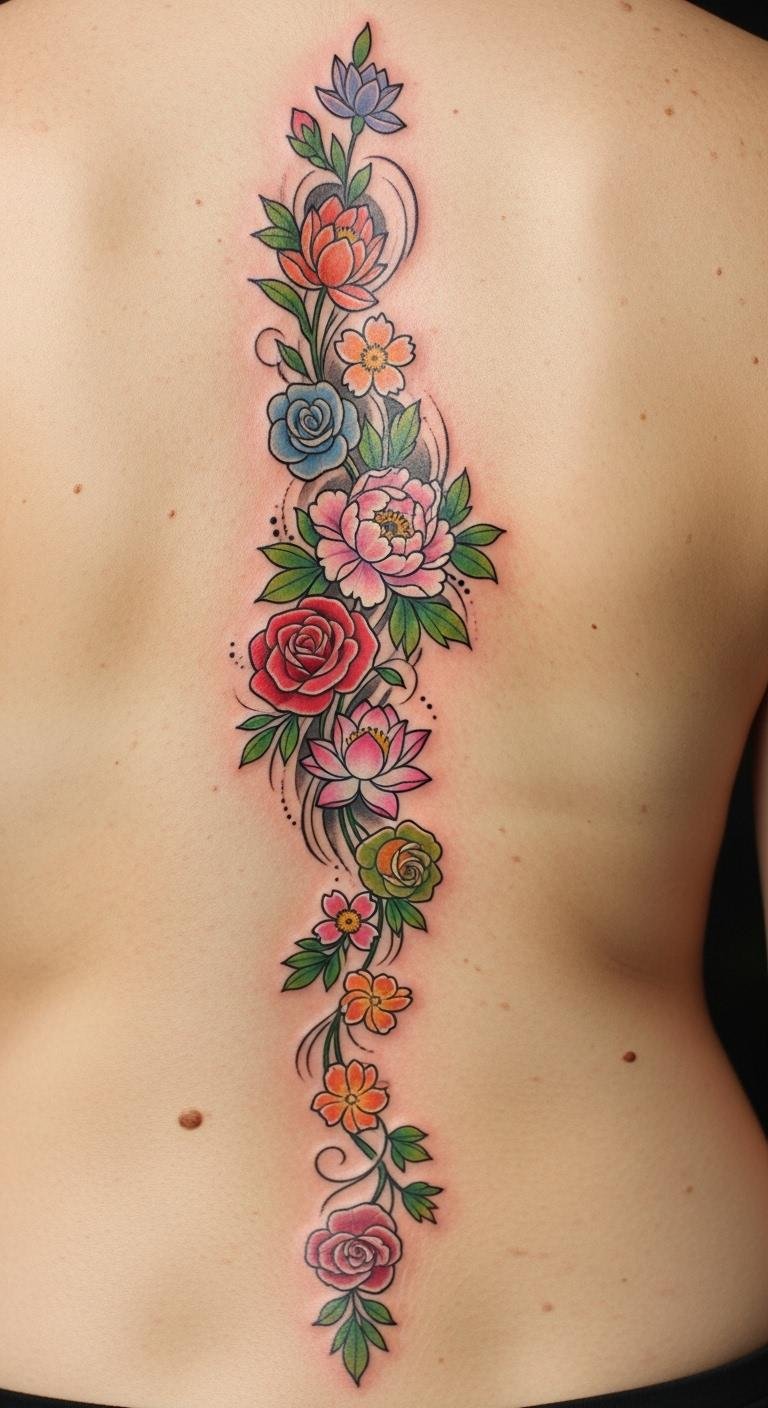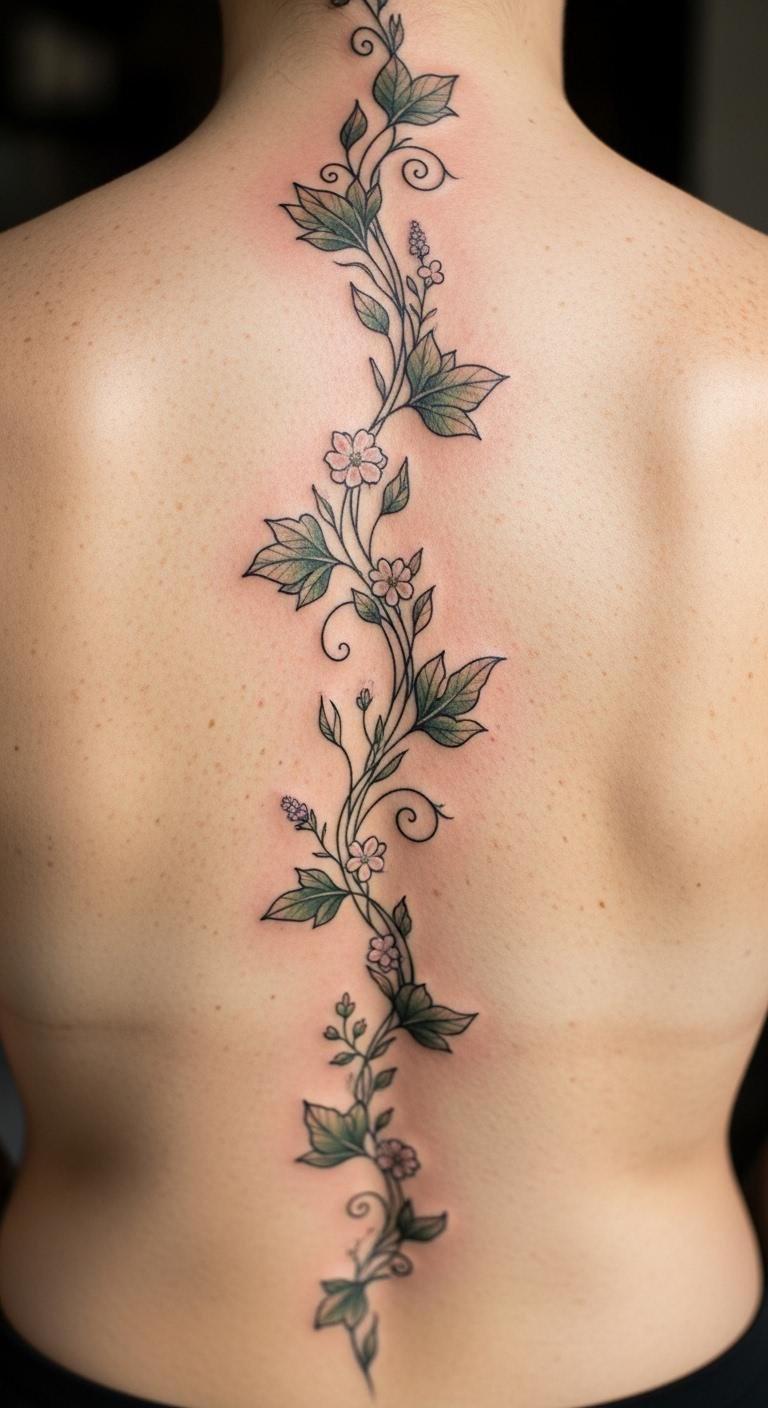 Embracing the essence of nature, this spine tattoo symbolizes growth, resilience, and a deep connection to the earth.