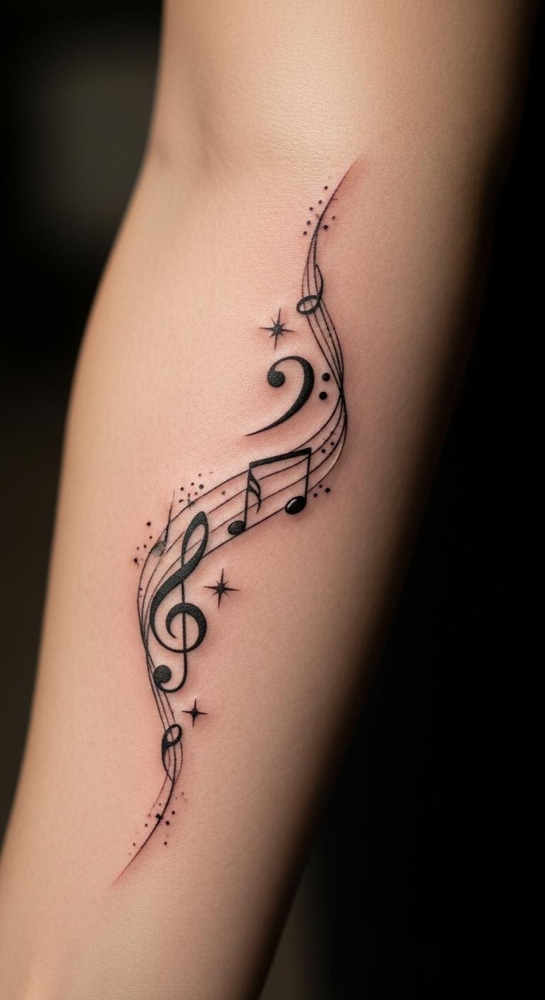 This music note tattoo on the inner forearm serves as a constant reminder of one’s passion for melody and rhythm.