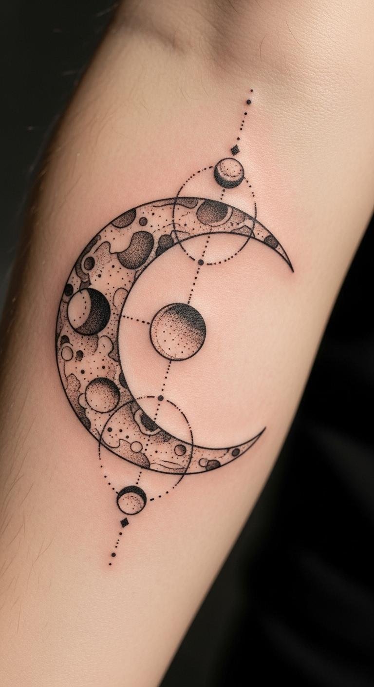 The crescent moon tattoo embodies the essence of intuition and femininity, symbolizing a deep personal connection to the cosmos.