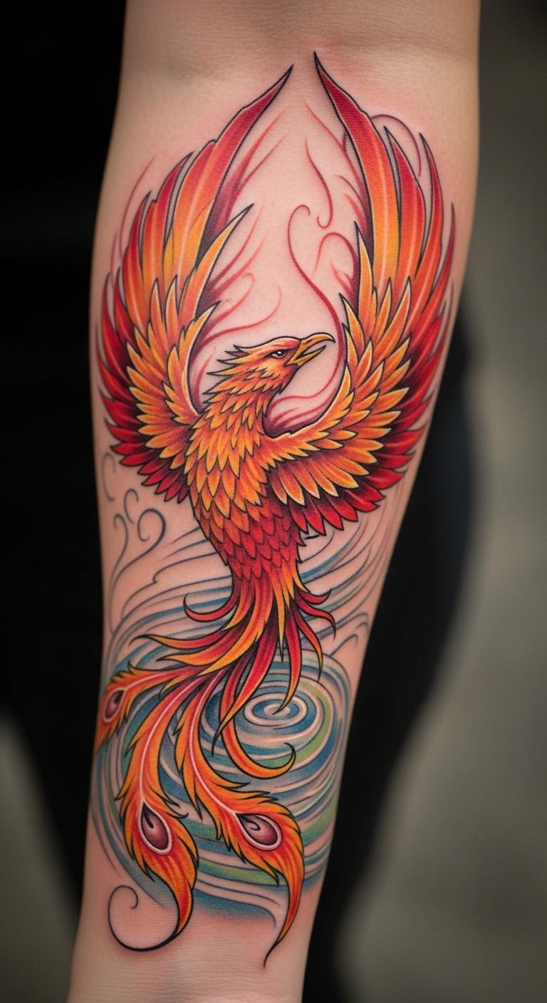 The phoenix, a symbol of resilience, embodies the spirit of overcoming challenges and emerging stronger from adversity. Positioned on the forearm, this tattoo serves as a visible reminder of personal empowerment and the beauty that can arise from pain.