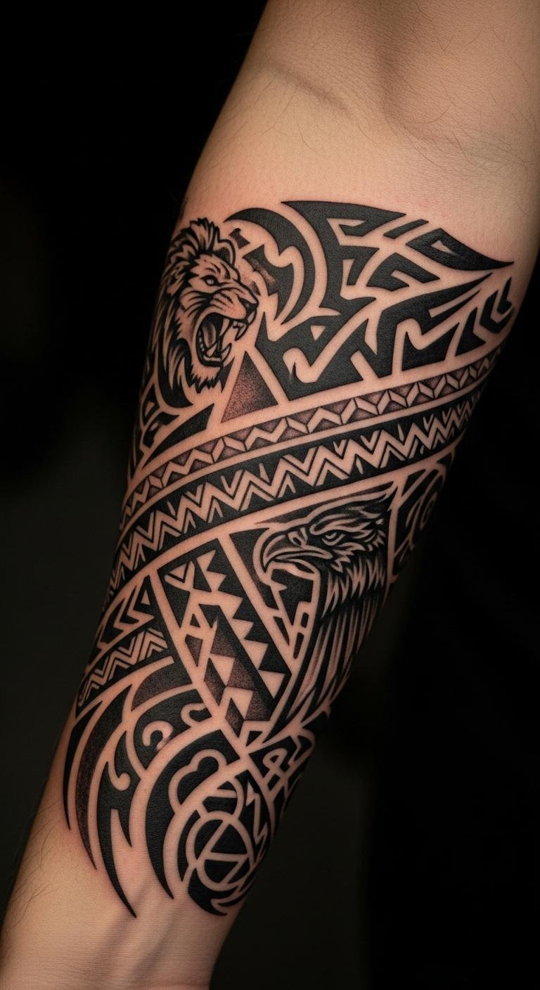 The tribal tattoo on the forearm embodies a rich tapestry of heritage, connecting the individual to their roots and ancestors.