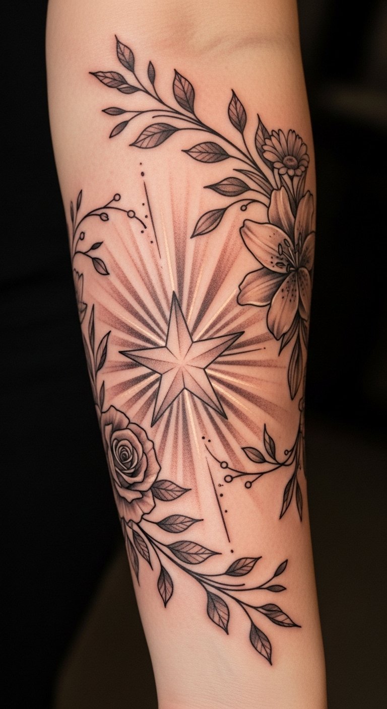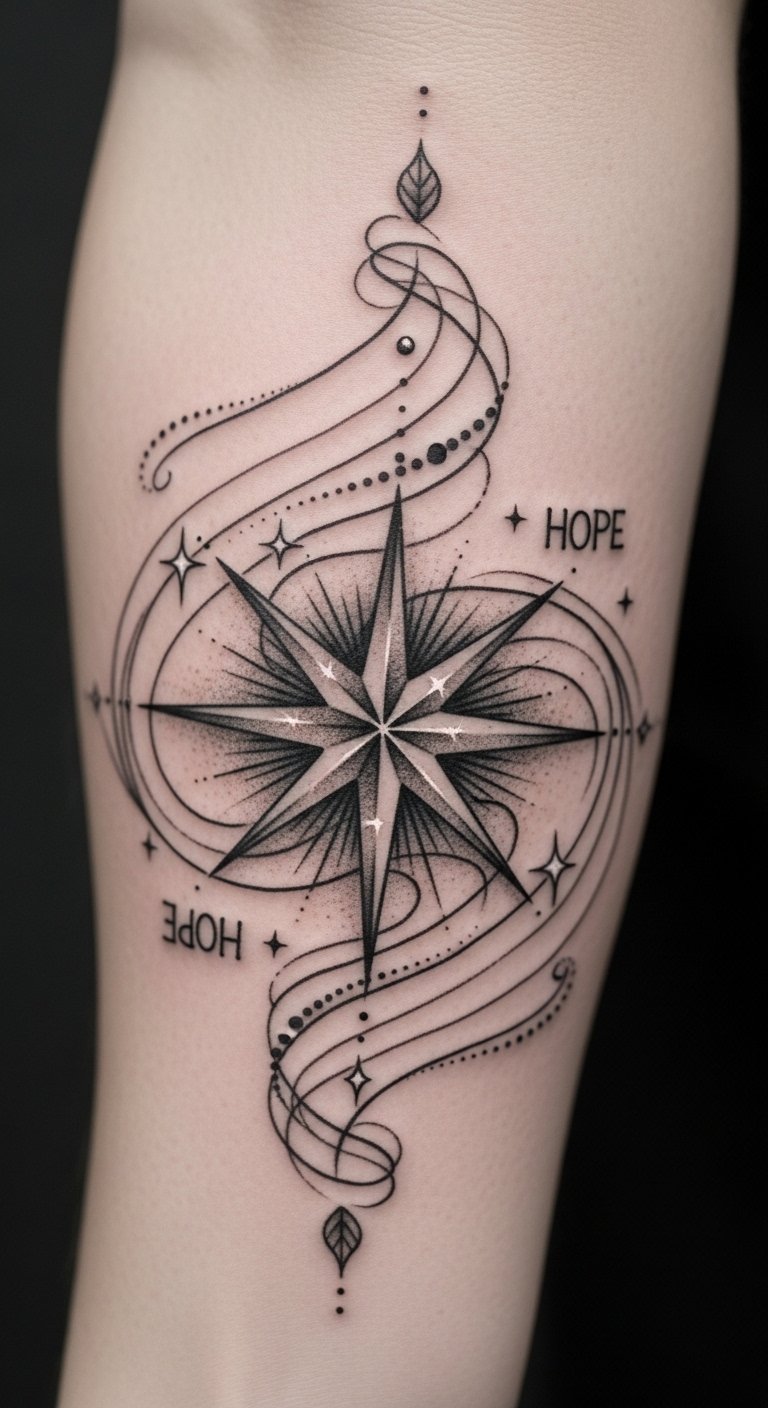 This tattoo symbolizes the journey of hope and renewal, with the star acting as a guiding light through life’s challenges.