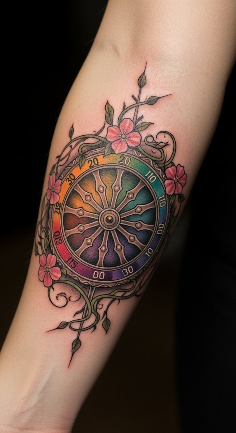 This tattoo design embodies the essence of embracing life’s changes and the transformative power of the Wheel of Fortune.