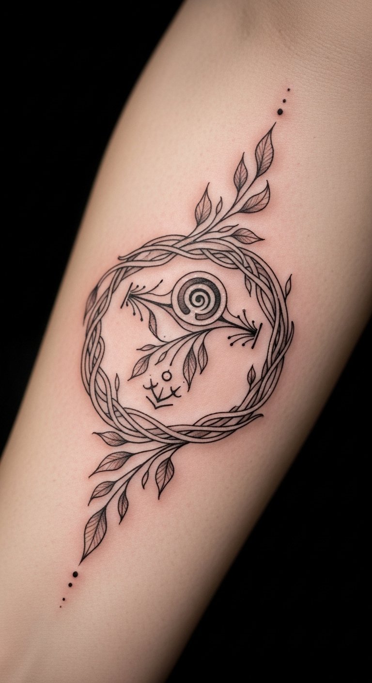 The placement on the forearm allows for visibility, serving as a daily reminder of the journey through life’s unpredictable cycles. The intertwining vines and blossoms symbolize growth and resilience, evoking emotions of hope and empowerment.