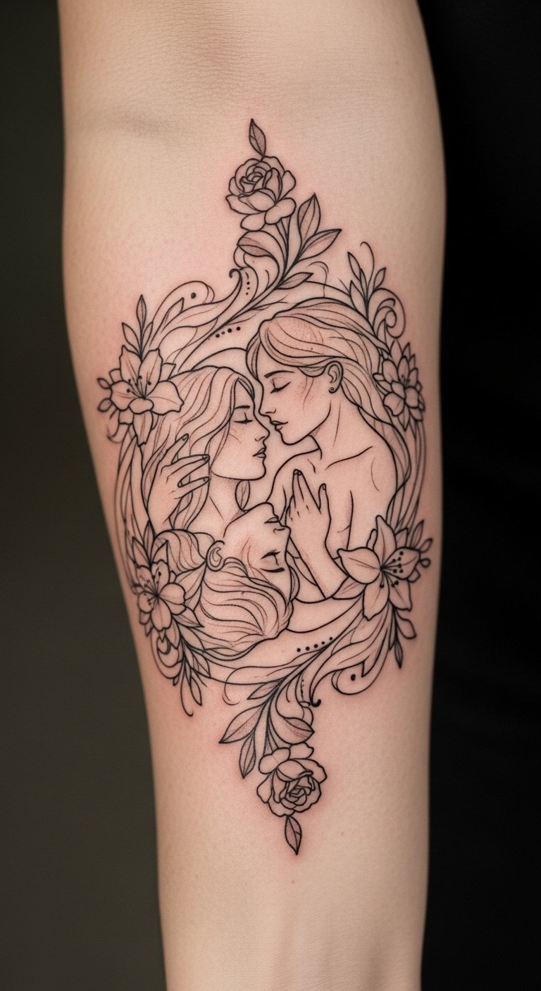 Placed on the forearm, this design serves as a constant reminder of love’s beauty and strength, empowering the wearer to celebrate their connections.