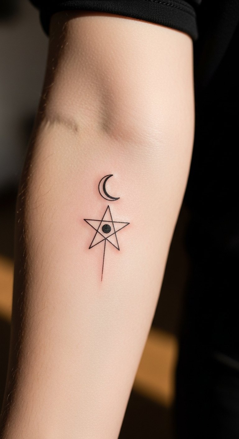 This tattoo, placed on the forearm for visibility and personal connection, symbolizes the journey of self-discovery and intuition.