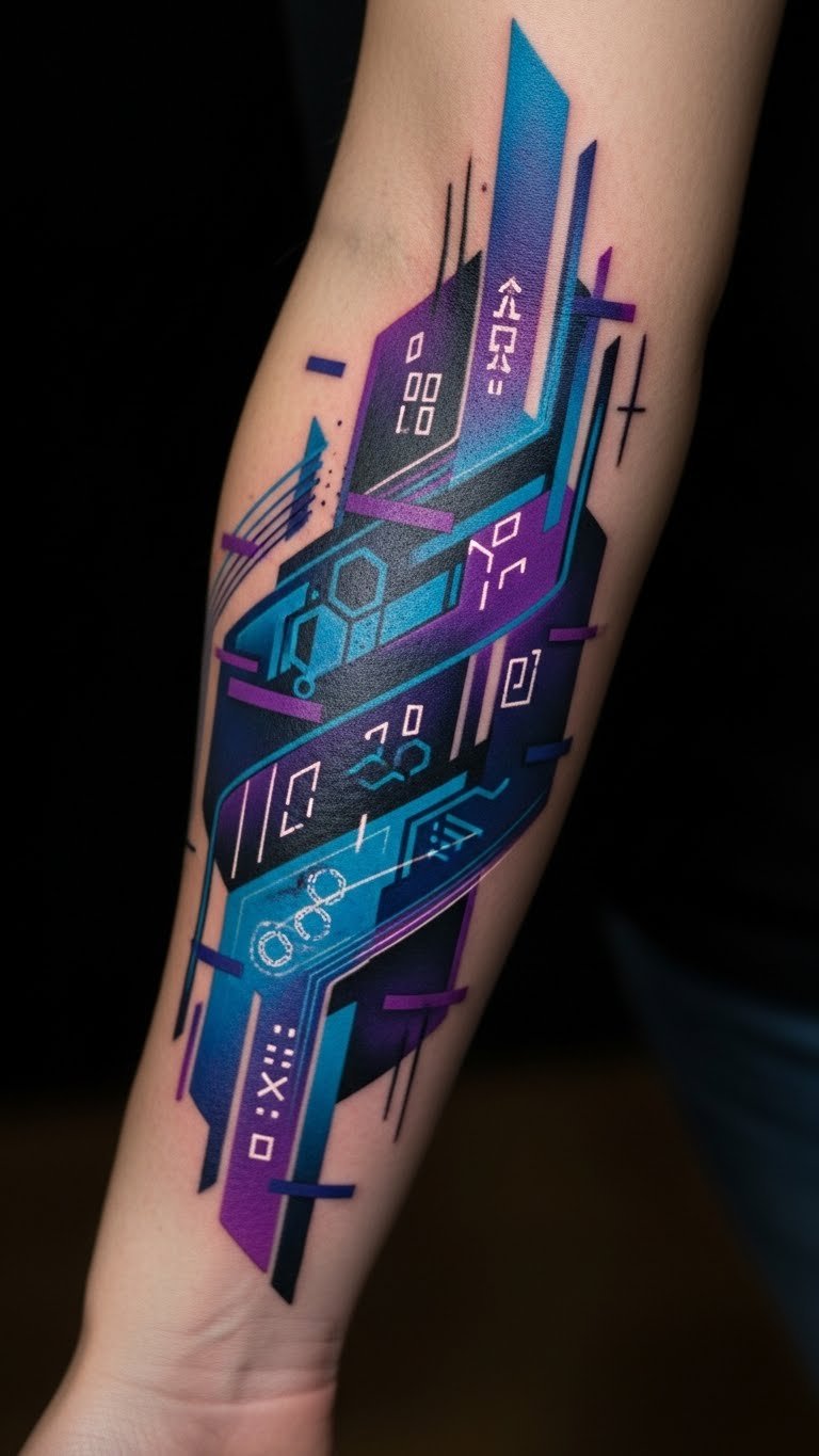 This tattoo symbolizes the harmony between technology and nature, reflecting the balance between human creativity and machine innovation.