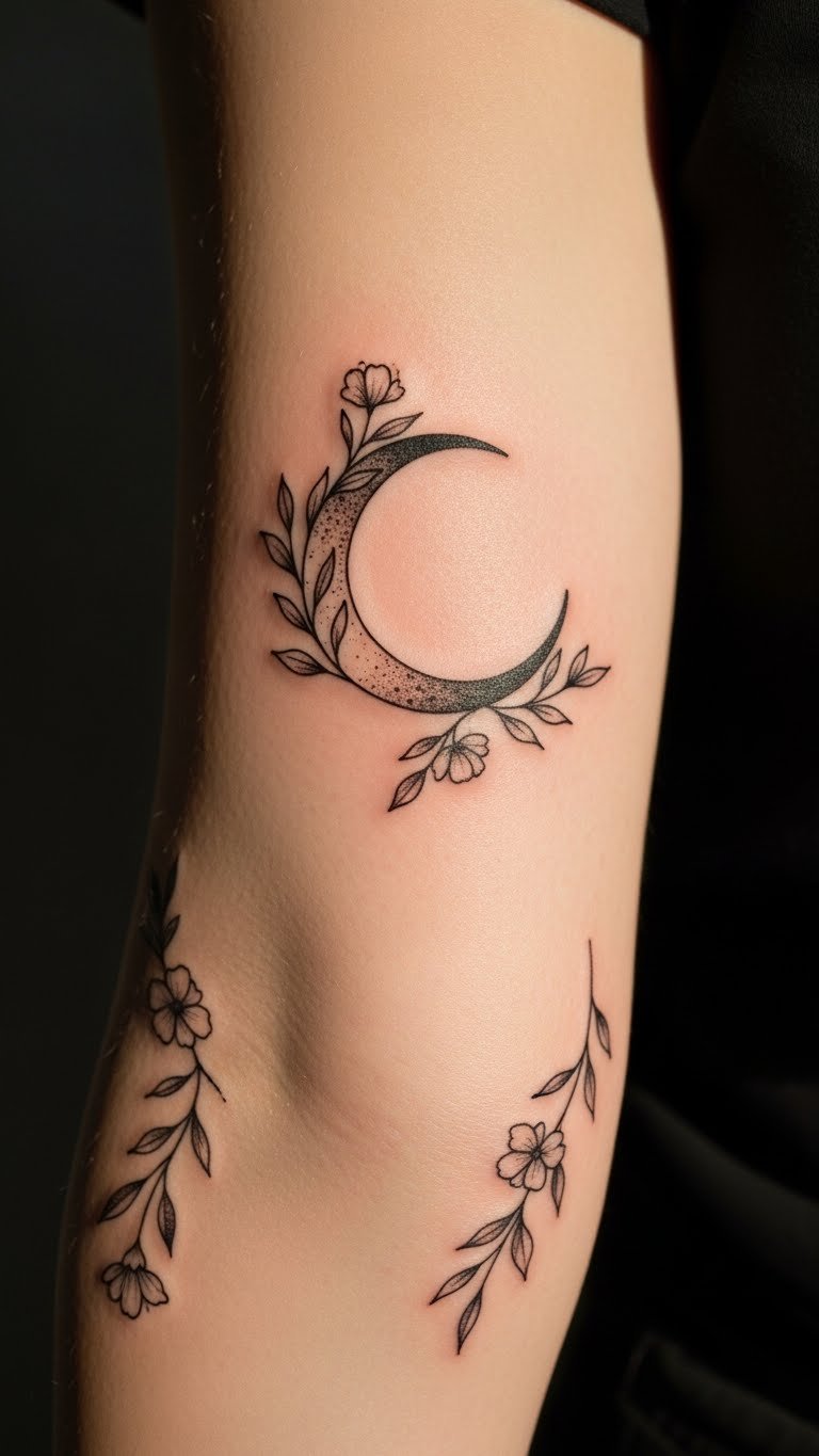 This tattoo symbolizes the connection between nature and the cosmos, representing personal growth and the cyclical nature of life.