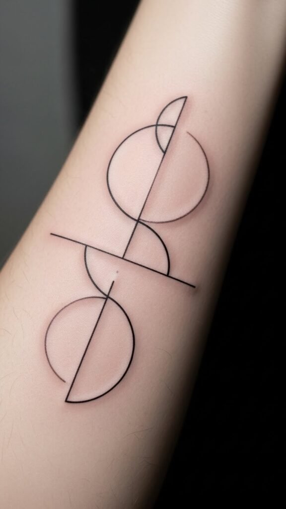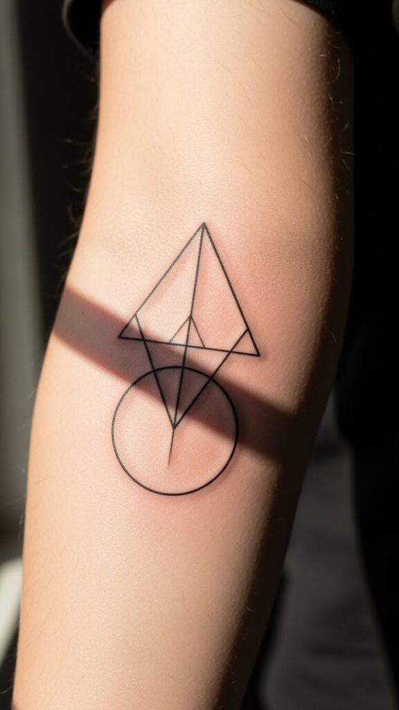 This tattoo symbolizes harmony and balance, with the triangle representing strength and stability while the circle embodies unity and completeness.
