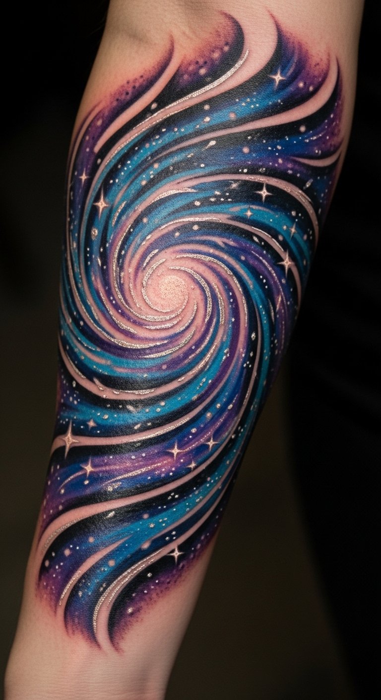 This captivating tattoo symbolizes the infinite possibilities of the universe and the wearer’s unique journey through life.