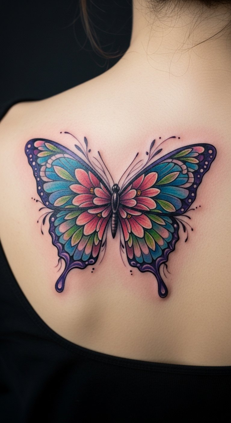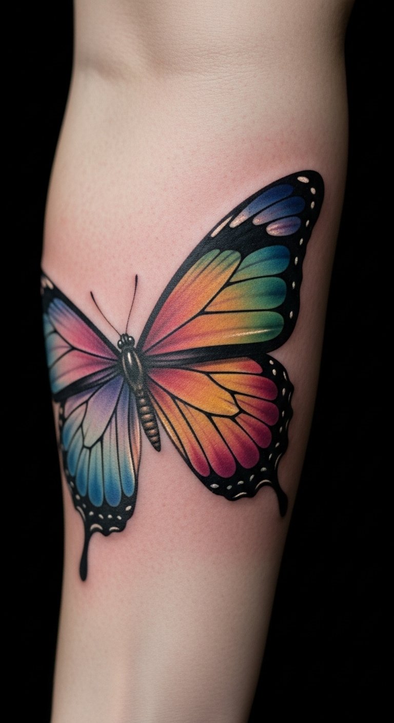 This tattoo embodies the essence of personal growth and change, with the butterfly symbolizing freedom and renewal.