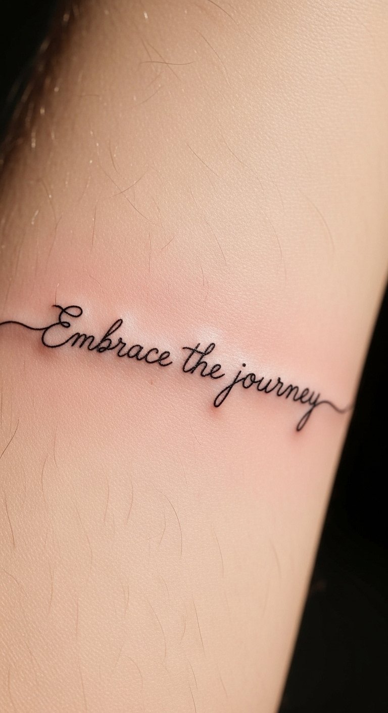 Positioned on the forearm, it serves as a constant reminder of personal growth and resilience, inviting the wearer to embrace their own journey.