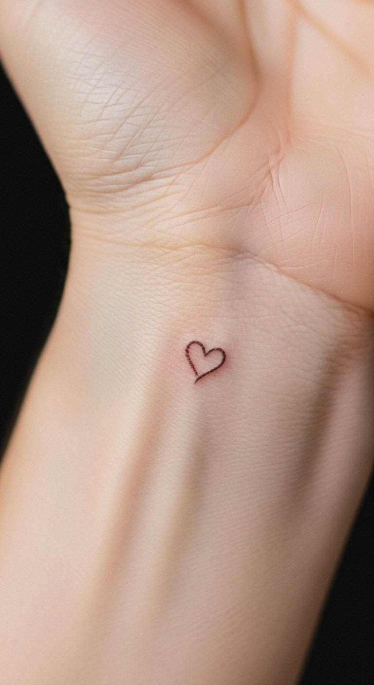 This small heart tattoo symbolizes love and affection, serving as a personal reminder of cherished relationships or self-love.