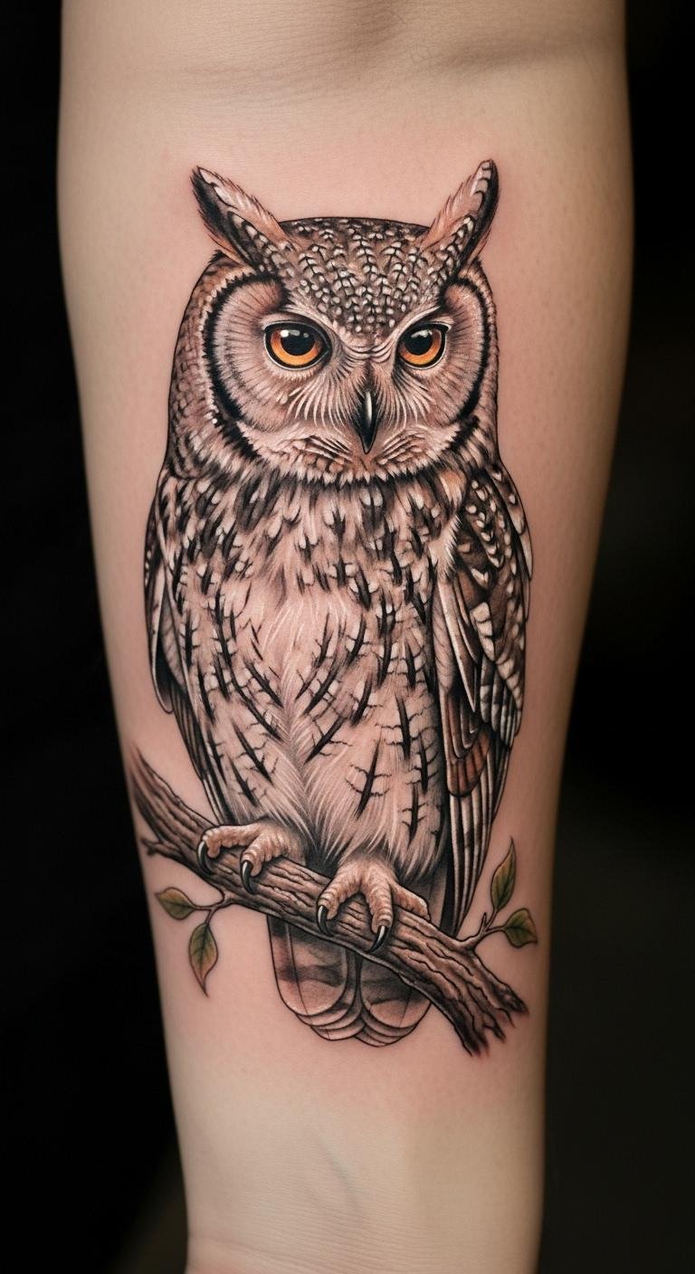 This tattoo symbolizes wisdom and intuition, often associated with the owl’s ability to see what others cannot.