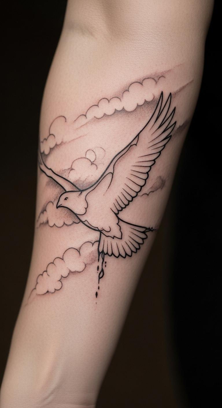 This tattoo symbolizes freedom and the pursuit of one’s dreams, where the bird represents the spirit soaring high above life’s challenges.