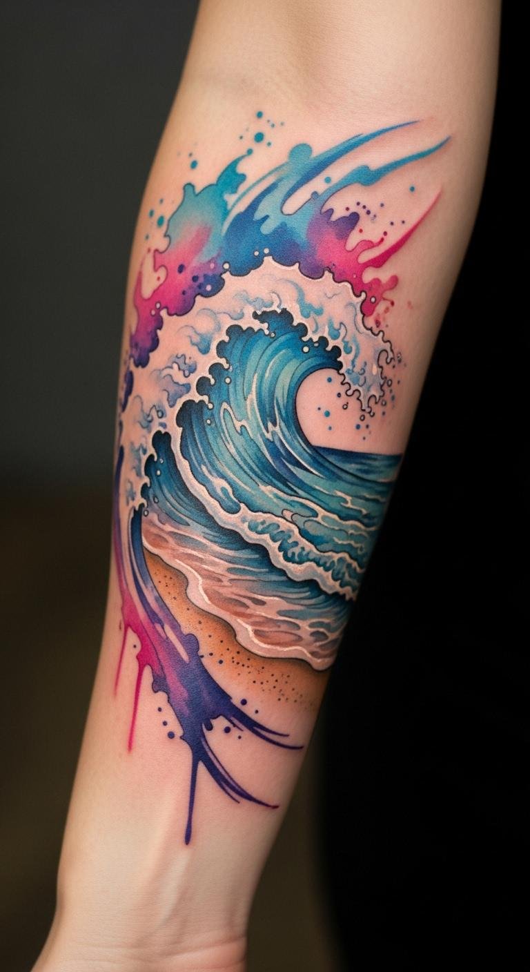 This tattoo symbolizes the ebb and flow of life’s emotions, with the waves representing resilience and the beauty of change.