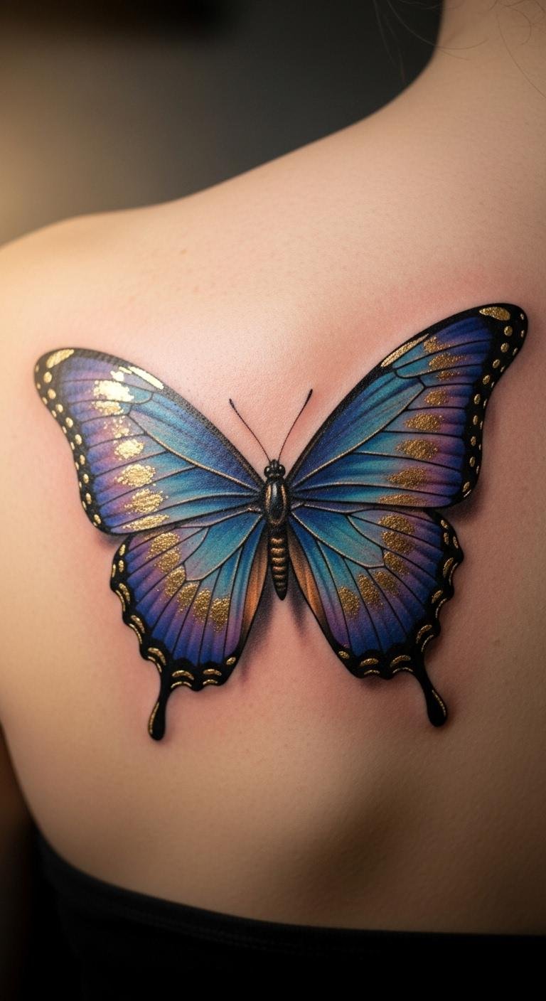 This butterfly tattoo symbolizes transformation and beauty, reflecting personal growth and the journey of life.