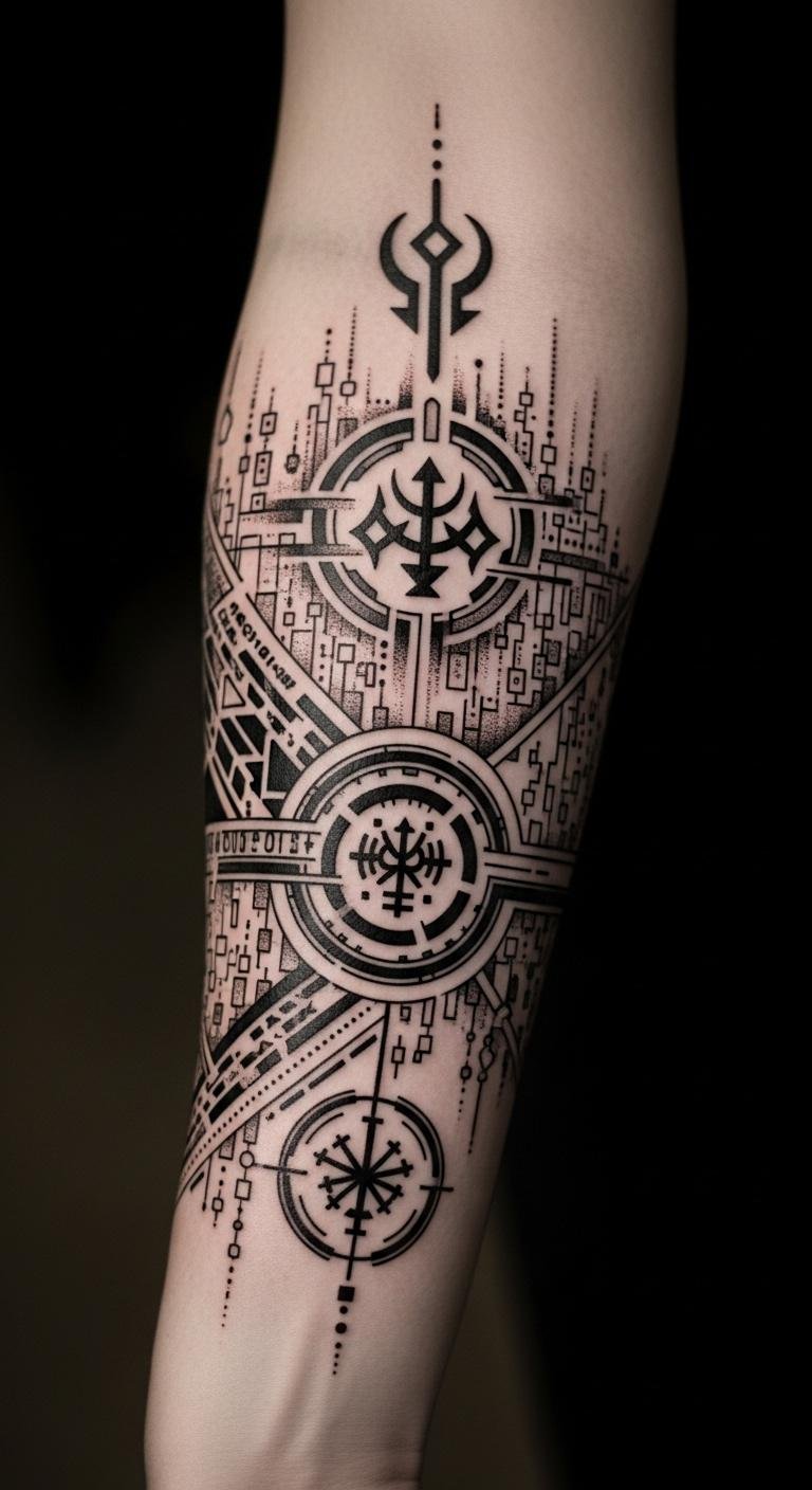 This tattoo embodies the spirit of the digital age, symbolizing innovation and freedom through its abstract forms.