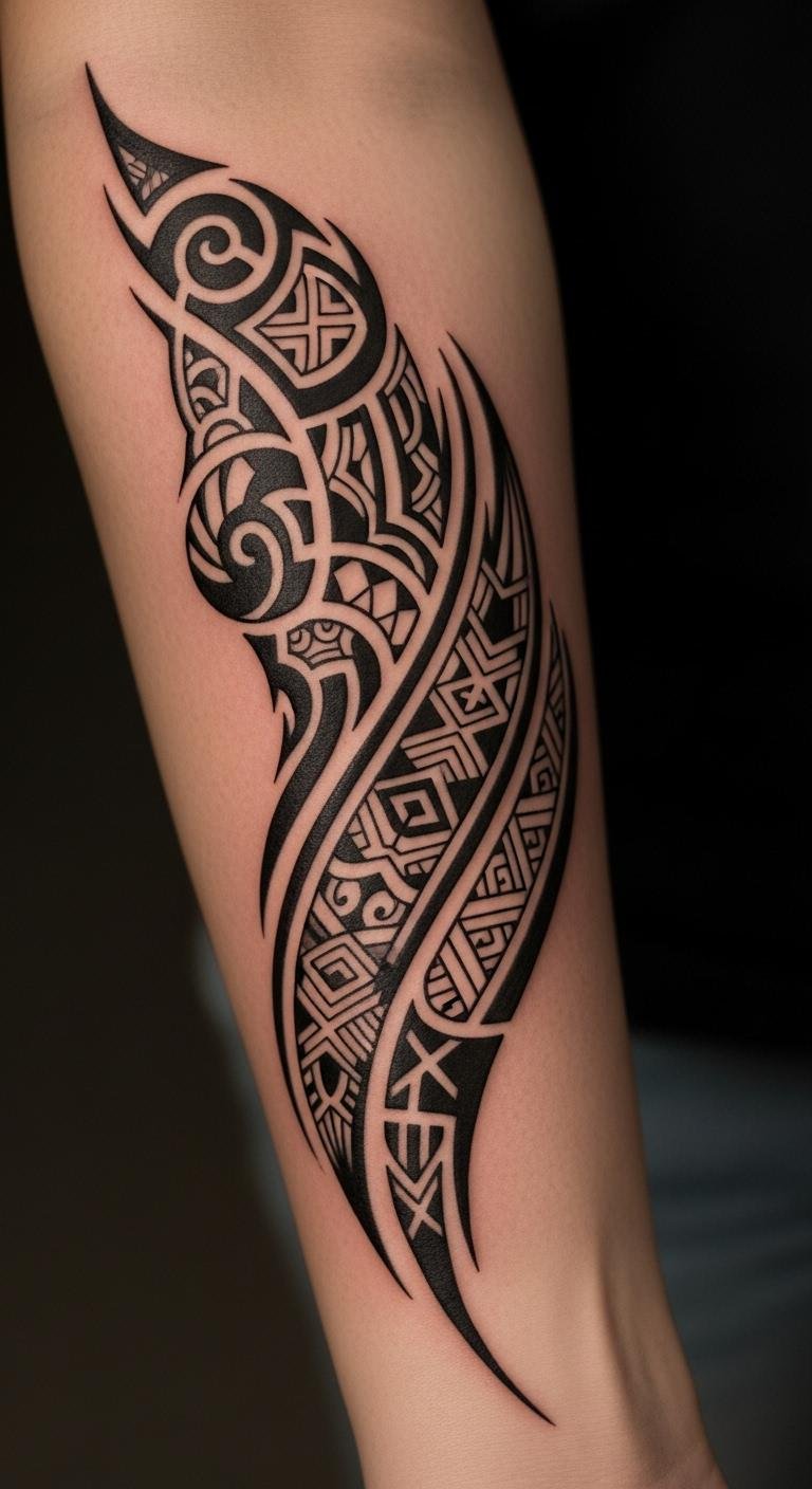 This tattoo represents a deep connection to heritage, embodying stories of strength and unity.