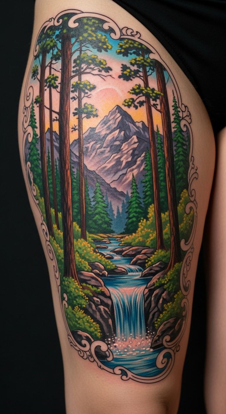Placed on the thigh, it allows for both visibility and discretion, making it a striking focal point that tells a personal story.