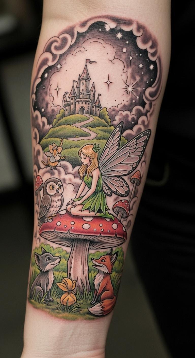 Positioned on the forearm, it serves as a constant reminder of the whimsical journey of life, inspiring freedom and creativity.