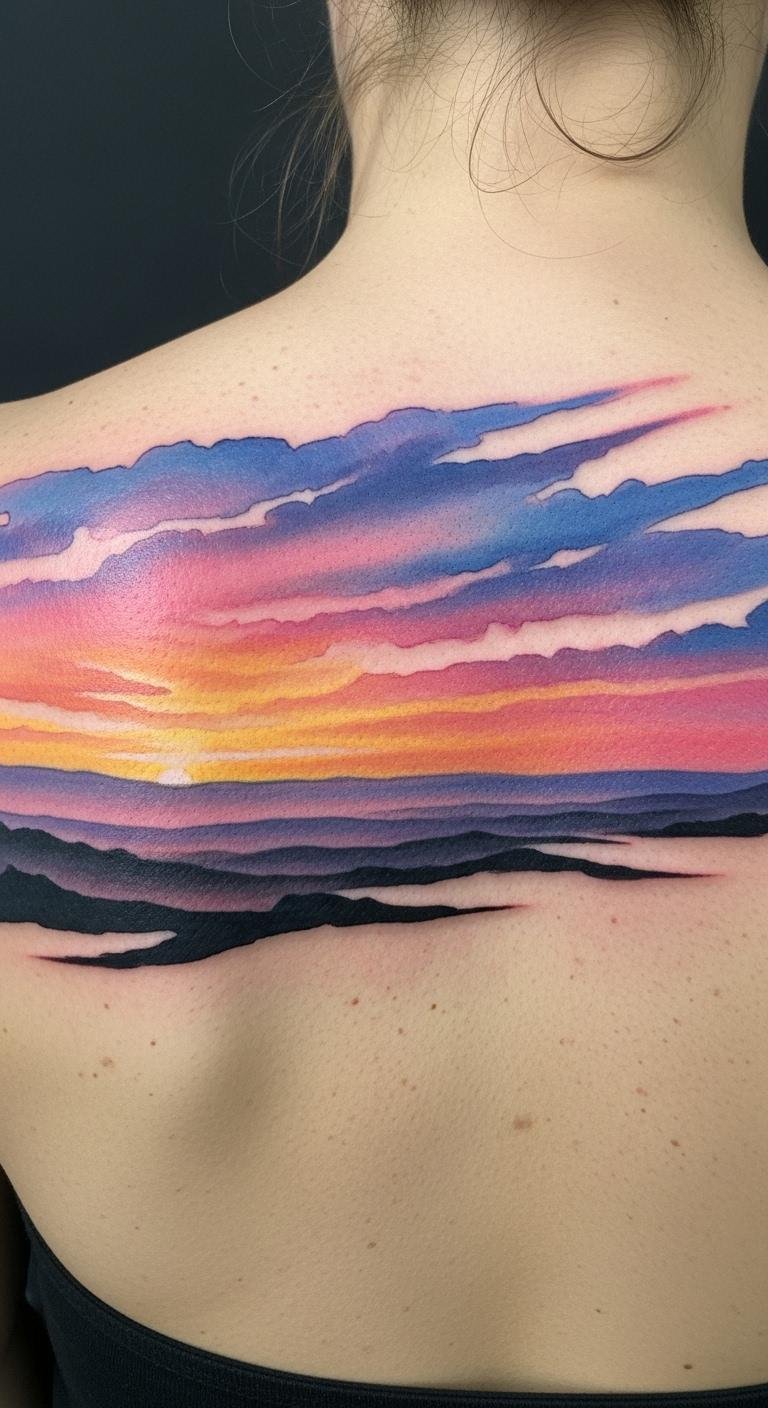 Placed on the upper back, it serves as a stunning canvas that embodies one’s journey through life, allowing the wearer to carry a piece of the vibrant world with them.