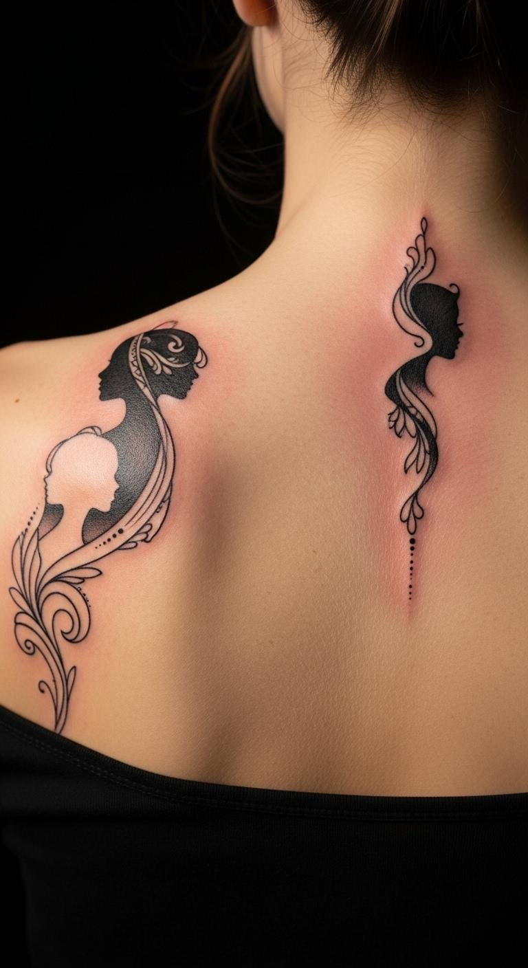 The flowing curves and delicate lines reflect freedom and confidence, inviting the wearer to embrace their unique identity. Positioned on the upper back, the design is both visible and personal, allowing for expression while maintaining a sense of intimacy.