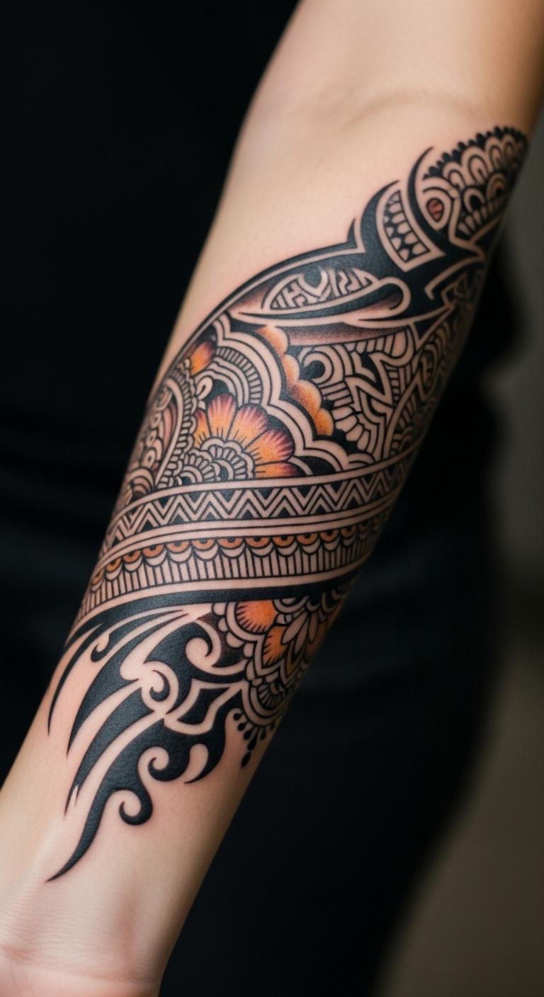 The tribal motifs represent strength and unity, while the henna-inspired design evokes tradition and femininity.