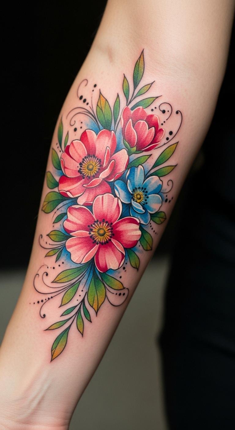 Each petal and stem intertwines with the skin, embodying a connection to nature and serving as a powerful reminder of one’s personal story.