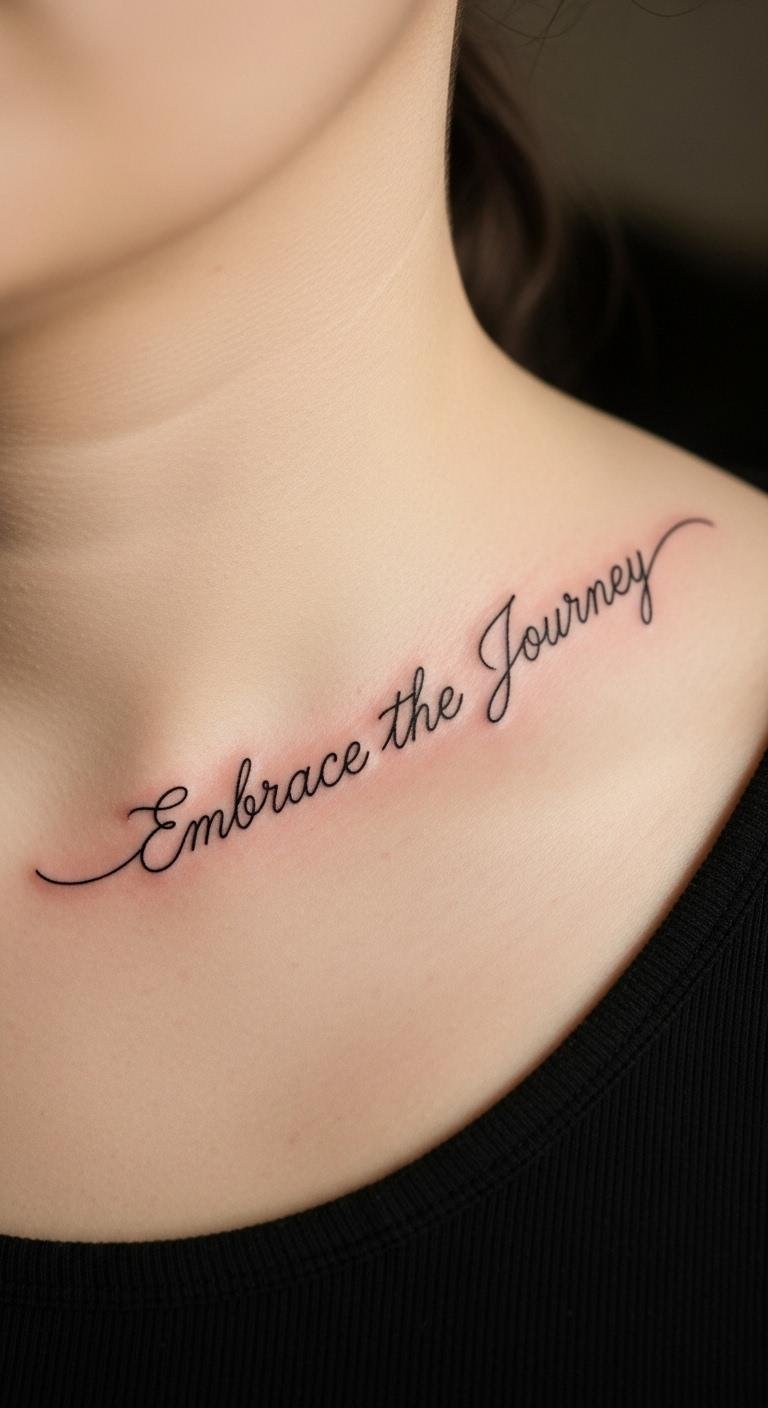 The elegant script flows with the body’s natural lines, embodying grace and strength, while inviting reflection on one’s unique path.